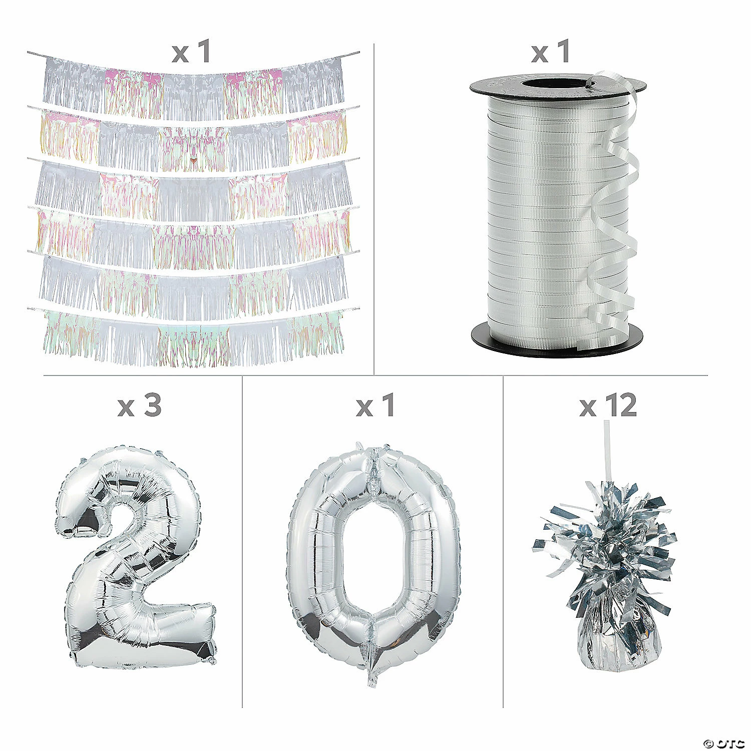 The best parties have fun photo booths so guests can snap some photos to remember the event. Give your guests a fun photo booth that will yield many fun photos with the help of this impressive backdrop kit. Featuring silver mylar balloons that spell out “2022” and a fringe garland backdrop, this kit is the perfect addition to New Year’s Eve or 2022 graduation celebrations. (23 pcs. per unit) Assortment may vary. Simple assembly required. © OTCIncludes:• 3 Silver “2” Shaped Mylar Number Balloons (34″)• 1 Silver “0” Shaped Number Mylar Balloon (34″)• 12 Foil Silver Metallic Balloon Weights (5 1/2″)• 1 Polypropylene Silver Curling Ribbon (3/16″ x 500 yds.)• 1 Foil White & Iridescent Fringe Garland Backdrop (6 pcs. per set. 61″ x 10″)