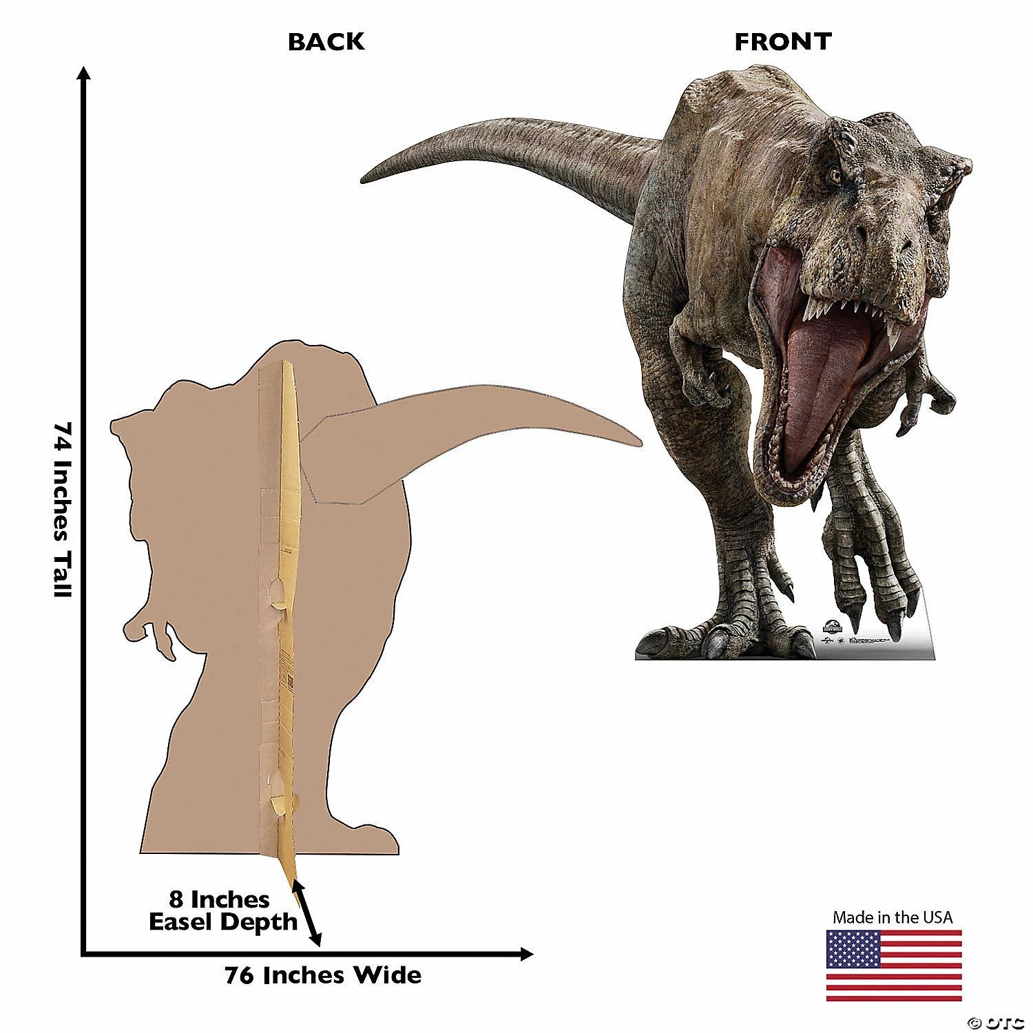 The king of the dinosaurs will make a fearsome impression on guests when you display this stand-up at your event. Kids will love taking pictures with the fan-favorite meat-eater as it towers over them. This prehistorically awesome decoration is the perfect addition to any dinosaur-themed birthday party or Jurassic World watch event. Just remember, the t-rex can’t see you if you don’t move! Cardboard. 76″ x 74″ Stand-ups are one-sided with a brown cardboard back. Simple assembly required. © Advanced Graphics Special Shipping Information: This item ships separately from other items in your order. This item cannot ship to a P.O. Box. This item may be subject to additional processing days.ITEM IS NOT ELIGIBLE FOR EXPEDITED SHIPPING