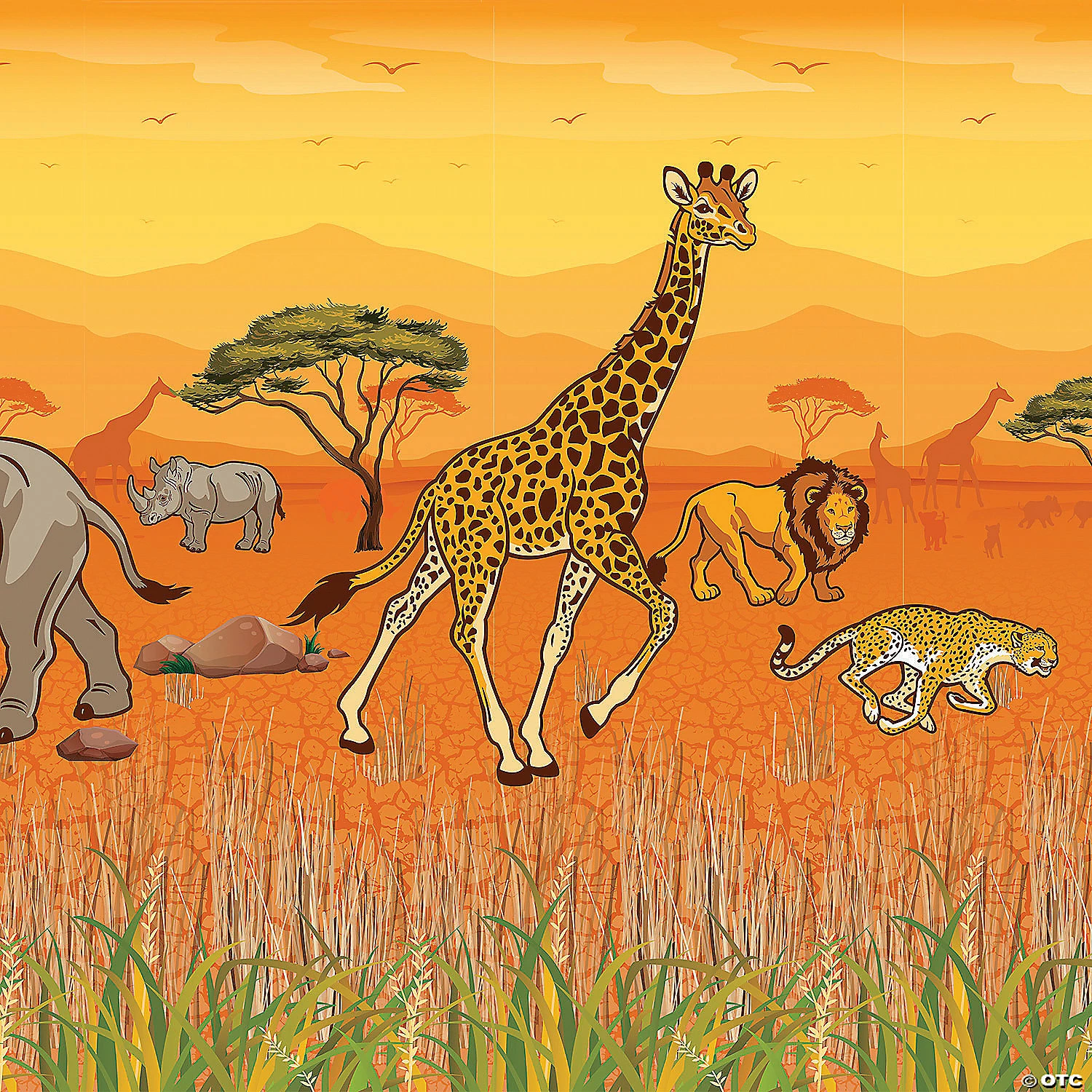 Transform your VBS classroom or party space into an African safari with this design-a-room backdrop and then add in animals and more to complete your look. Check out even more African Safari decorations and supplies found elsewhere on this website. Plastic. Two-piece background banner when assembled, 30 ft. x 6 ft.; 58 cutouts on four 3-ft. x 6-ft. sheets. Individual decorations must be cut out with scissors. Use your own wall adhesive for hanging. Simple assembly required. © OTC