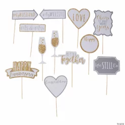 Planning an anniversary party? Be sure to set aside some space for some photo ops with the help of these photo stick props! Some of the photo booth props include a space for you to write in your names or other message with your own permanent marker. (1 dozen per set) 2″ – 9″ x 2″ – 7″ cardstock props on 8″ wooden sticks. © OTC