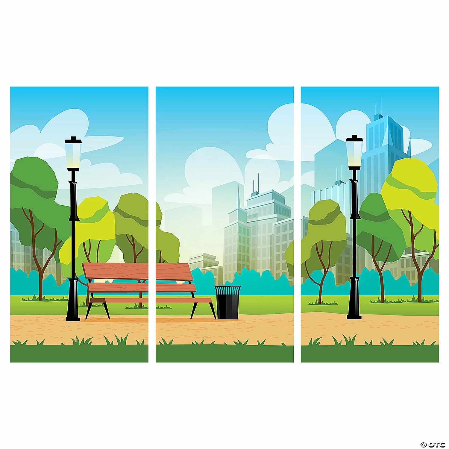 Instantly create a city park scene where no park exists with this colorful backdrop. Great for photo booths, party decorations or as a scene backdrop for a show set in a city park, this wall decoration is an easy way to create the look of a city park without bringing in a bunch of park benches and trees to set the scene! Plastic. (3 pcs. per set) Assembled, 9 ft. x 6 ft. Simple assembly required. © OTC