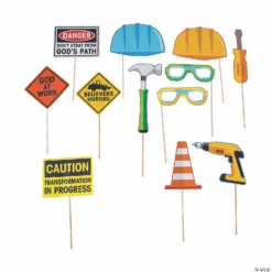 Your Construction VBS photo booth is about to become a busy spot! These fun photo props encourage people to snap and share photos, which helps spread the word about your church’s offerings to the local community. A fun photo booth adds to the overall VBS experience and helps kids get excited for learning about Jesus! Cardstock. (1 dozen per unit) 3 3/4″ – 6 1/4″ x 2″ – 8″ on 8″ wooden sticks. © OTC