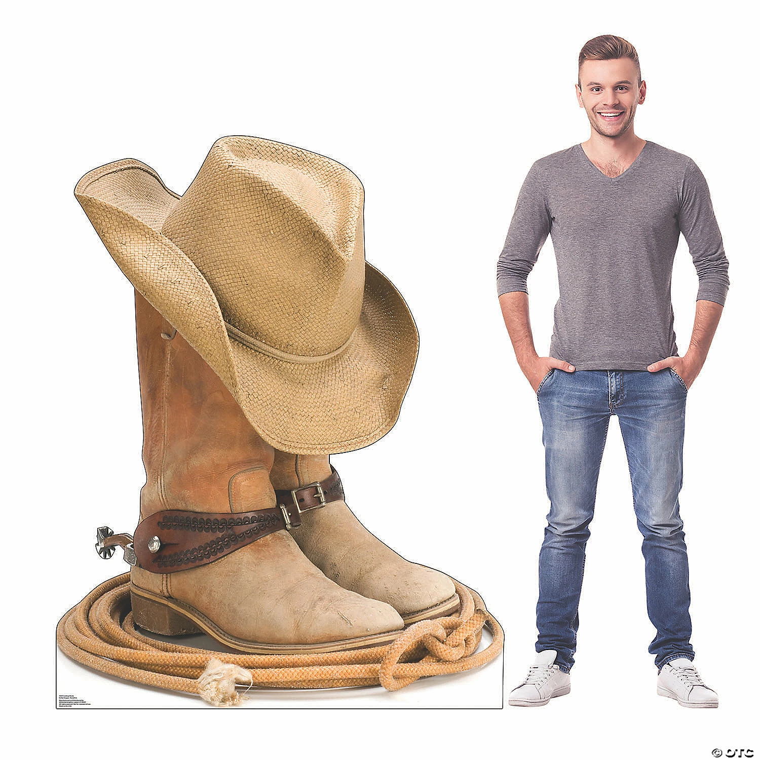 Lasso up a great Western party decoration with this cowboy hat and boots stand-up! This larger-than-real life Western decoration is perfect for a shindig, hoedown, square dance or country music event, or any celebration with a Western feel. Use this cardboard stand-up in a photo booth or to greet guests at the door — along with a hearty “Howdy!” Cardboard. 45″ x 57″ Stand-ups are one-sided with a brown cardboard back. Simple assembly required.Special Shipping Information: This item ships separately from other items in your order. This item cannot ship to a P.O. Box. This item may be subject to additional processing days. ITEM IS NOT ELIGIBLE FOR EXPEDITED SHIPPING