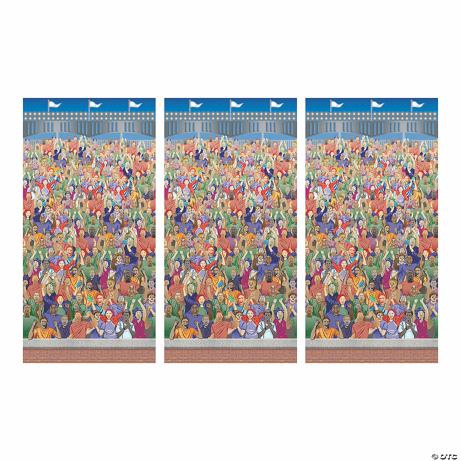 Make it feel like a stadium packed with people are cheering you on with this great Crowd Backdrop Banner! This wall decoration is a great addition to party supplies and decorations for a sports team banquet. Use it as a photo background and make snaps from your party even more amazing. Plastic. (3 pcs. per set) Assembled, 9 ft. x 6 ft. Simple assembly required. © OTC