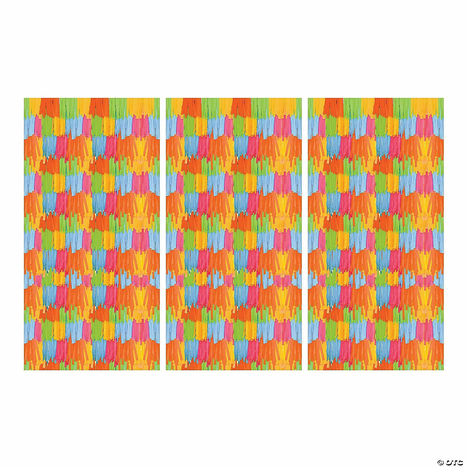 Spice up your party with fun fiesta decorations like this fringe print backdrop! Designed to look like the paper fringe of a pinata, the plastic backdrop features a bold pattern of blue, orange, yellow, green and pink! Create a DIY photo booth for your fiesta with this wall decoration and fiesta props! Plastic. (3 pcs. per set) Assembled, 9 ft. x 6 ft. Simple assembly required. © OTC