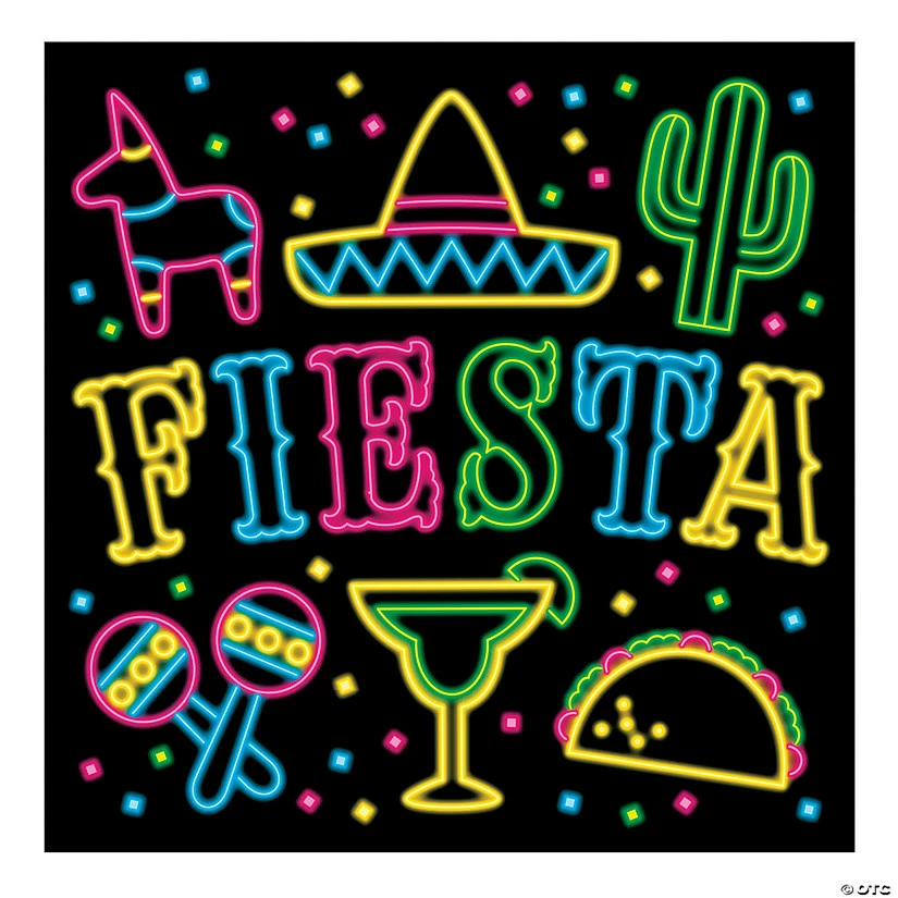 No fiesta is complete without this! Featuring a neon light display of icons like a taco, cactus, maracas and more, this backdrop is a must-have for Cinco de Mayo party décor. But think beyond this special day. Use this as a DIY photo backdrop to add fiesta flair to Day of the Dead, birthdays, bridal showers and much, much more! Plastic. 72″ x 72″ © OTC