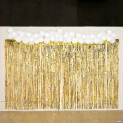 Transform a typical wall into a dazzling display of gold fringe and white balloons with the help of this decorating kit. Perfect as a photo wall at a party, school dance, fundraiser or even a wedding reception, this decorating kit makes it easy to create a decorated space that’s perfect for taking photos of guests. (50 pcs. per unit) Simple assembly required. Assortment my vary.