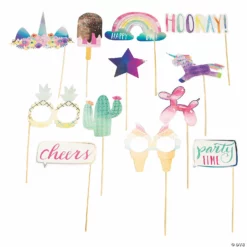 If your birthday wish was for oh-so-fun party picks, then it’s about to come true! A must-have for a DIY photo booth, these stick props will have guests striking a pose, featuring iridescent and colorful designs of pineapples, ice cream cones, stars and much more. These add just the right touch of shimmer and shine to your party supplies. 3…2…1…cheese! Paper. 3/4″ – 8 1/4″ x 4″ – 6 1/2″ props on 12″ wooden sticks.
