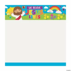Create a memento to remember celebrating the most egg-cellent day of spring! Great for Sunday School classroom décor, this huge poster features a colorful cartoon image with text that reads “We Believe Jesus Lives” and enough room for all the students to autograph their names. This can also be hung at a church egg hunt for all the attendees to sign! Recommended for use with permanent markers to prevent smearing. Plastic. 6 ft. x 6 ft. © OTC