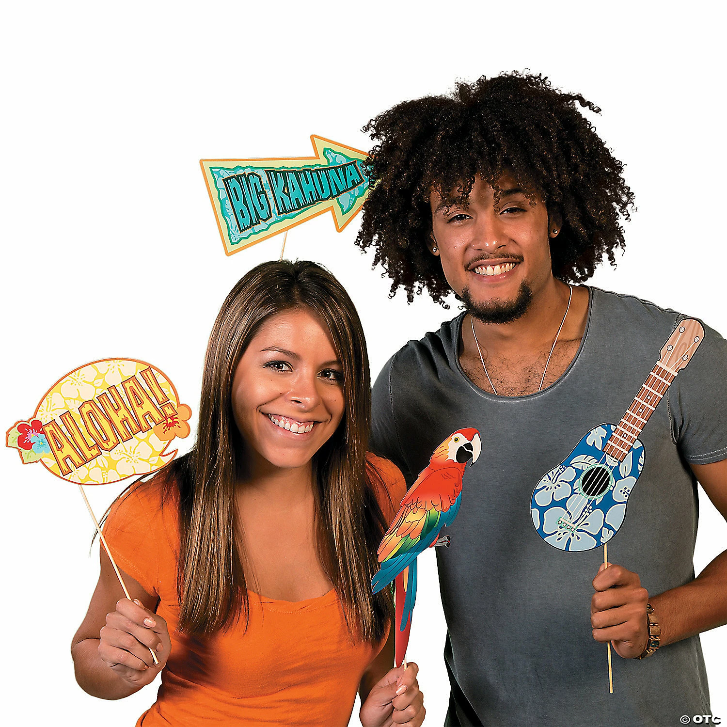 Perk up your luau photo booth with these festive photo props. Featuring exotic island flowers, a tiki mask, a parrot, silly sunglasses and more, this kit will bring your Hawaiian extravaganza or pool party to life and add color to the hottest event of the summer. Cardstock. 5″ – 10″ x 1″ – 13″ props on 12″ wooden sticks. © OTC