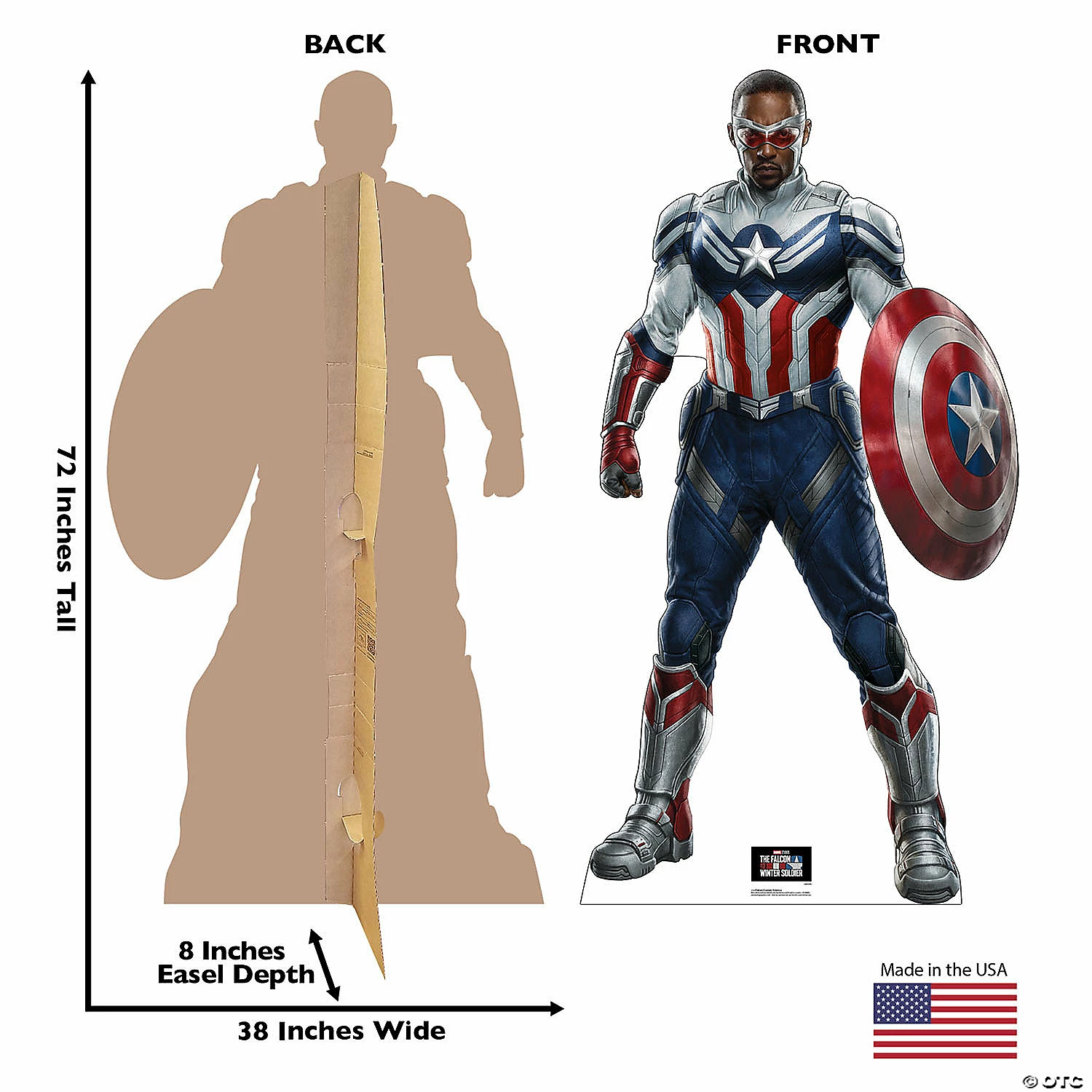 Join Falcon as he embarks on a journey to become the new Captain America! This stand-up features the superhero dressed in his new suit and holding the iconic shield from the hit miniseries, The Falcon and the Winter Soldier. It’s a fun decoration and photo booth prop for a superhero-themed birthday party or event. Complete the look with other character stand-ups from this website. This cut out is also a great gift for a Marvel fan! Cardboard. 38″ x 72″ Simple assembly required. Stand-ups are one-sided with brown cardboard backs. © Advanced GraphicsSpecial Shipping Information: This item ships separately from other items in your order. This item cannot ship to a P.O. Box. This item may be subject to additional processing days. ITEM IS NOT ELIGIBLE FOR EXPEDITED SHIPPING