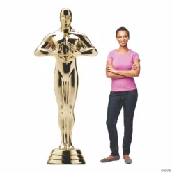 And the winner is… Hold a movie awards ceremony watch party and add this award stand-up to your party supplies and decorations. This photo prop looks just like the little man award handed out by the Academy and is perfect for a photo booth or for your own red carpet. Cardboard. 35″ x 87″ Stand-ups are one-sided with a brown cardboard back. Simple assembly required. © Advanced Graphics