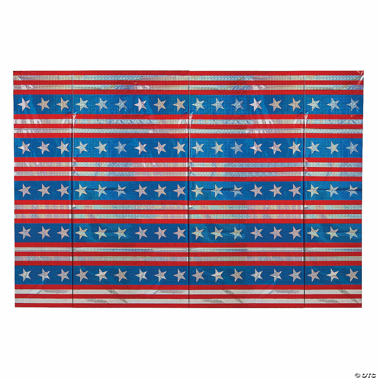 Perfect as a backdrop for photos or as a patriotic wall decoration, this three-piece banner can be displayed all together as a backdrop or separately to cover wall space at a patriotic celebration like Fourth of July, Veterans Day or a Memorial Day event. Celebrate America with this impressive holographic decoration. Plastic. (3 pcs. per set) Assembled, 9 ft. x 6 ft. Simple assembly required.