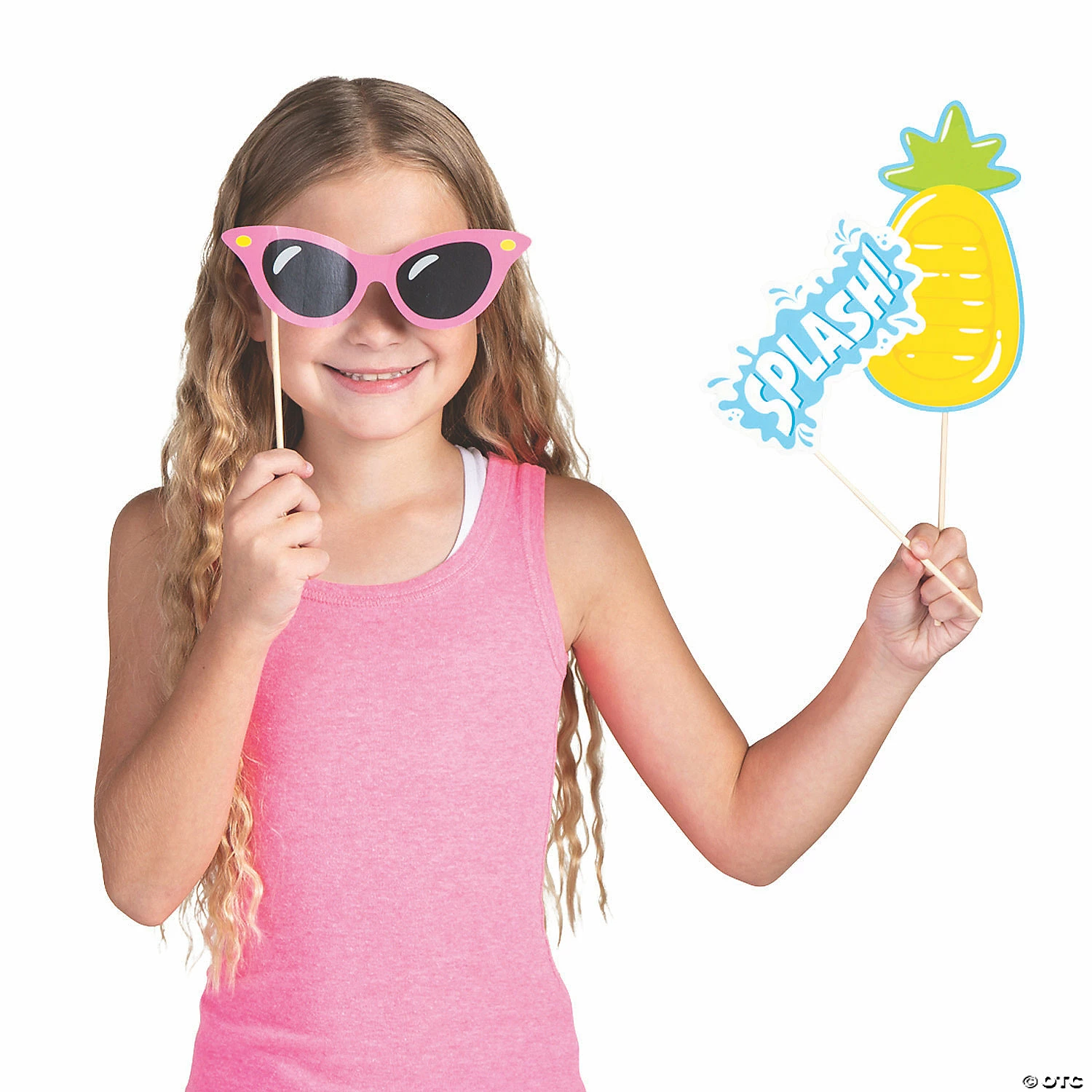 The right photo props can make or break a party. Make your pool party great with these photo props which will compel guests to whip out their phones and start taking and sharing photos. Perfect for a photo booth, but equally fun when scattered around your party space, these photo props help complete your pool party decorations. Cardstock. (1 dozen per unit) 4″ – 8 1/2″ x 2 1/4″ – 8 1/4″ on 8″ wooden sticks. © OTC