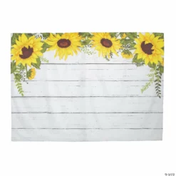 Here comes the sun(flower)! The beautiful sunflowers on this backdrop bring a ray of sunshine to your wedding reception decorations, school dance dĆ©cor or most any other event. Hang this photo booth backdrop next to your DIY photo booth supplies and let the memories commence! Polyester. 83″ x 59″ Includes adhesive tabs for hanging. Ā© OTC