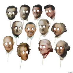 Playing the part of president has never been so easy! Great for active play and social studies curriculum, these props come designed as some of America’s greatest leaders, including everyone from George Washington to Donald Trump. Whether you’re posing for a picture, completing a costume or playing a role in the school play, these props help enrich curriculum and make United States history fun for students. Each paper prop comes on a 8″ wooden stick. 6 3/4″ – 10 1/4″ x 10 1/2″ – 12″ © OTC