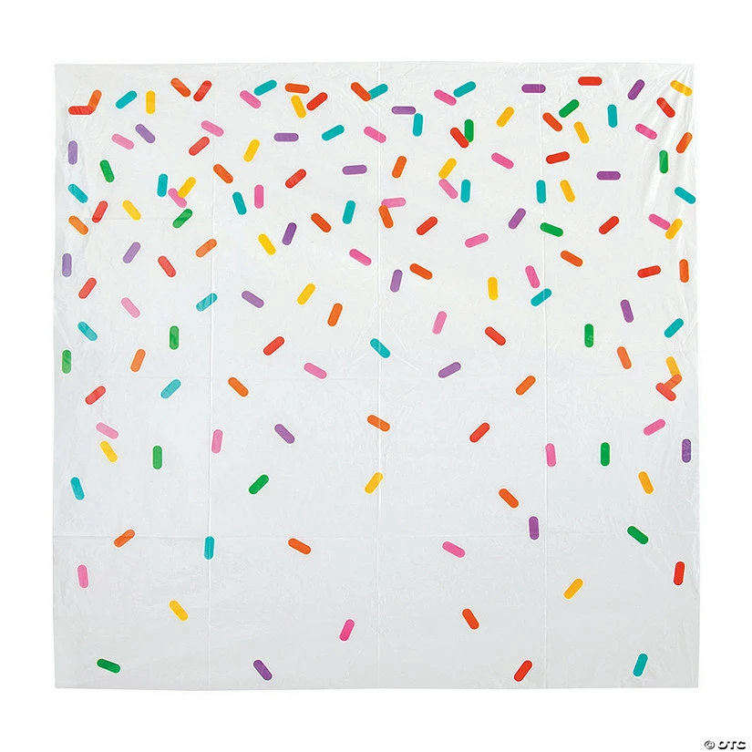 Make any celebration sweeter in an instant! Showing a shower of sprinkles in so many shades, this backdrop is a must-have for birthday party décor. Great for almost any theme, display this against a wall for an instant DIY photo booth backdrop. All you need is some props, balloons or garland. This also can be hung behind the dessert table to draw the eye to sugary treats! Plastic. 72″ x 72″