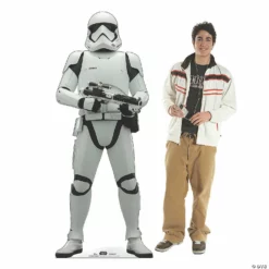 Brighten up your bash with a member of the Dark Side! Featuring a stunning Stormtrooper design, this large stand-up is a must-have for Star Wars party supplies or bedroom décor. Set him next to the buffet table or in a photo booth to scare away those goody-goodies like Rey and BB-8. More food and fun for the baddies! Cardboard. 28″ x 73″ Stand-ups are one-sided with a brown cardboard back. Simple assembly required. © & ™ Lucasfilm Ltd. All Rights Reserved.