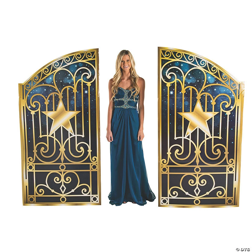 Make a grand entrance at your next grand event! Featuring a starry design, this glamorous gate is a must-have for homecoming or prom décor. In fact, it can be used at any night sky-inspired gathering. Simply set in in the entryway so every guest gets the honor of walking through it, or use as part of a DIY photo booth backdrop! Cardboard. (2 pcs. per unit) 3 ft. x 6 ft. Stand-ups are one-sided with a brown cardboard back. Simple assembly required. © OTC