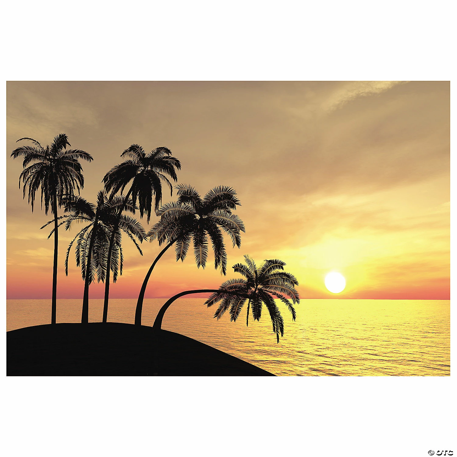 Looking for Hawaiian luau decoration ideas? Transform any room into a surreal island backdrop instantly with our large photorealistic Sunset Beach Backdrop Banner. Perfect for creating a tropical paradise no matter where your event may be, just put the three plastic pieces together to create this lush background that all your guests will want their photo in front of. (3 pcs. per set) Completed, 9 ft. x 6 ft. Simple assembly required. © OTC