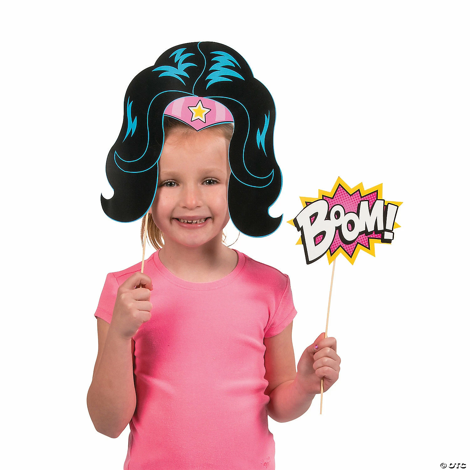 Snap some fun pics during your superhero girl party with these paper photo stick props. Featuring masks and superhero sayings, set these photo booth props out for guests to pick up and enjoy throughout your party. Each prop is on a 12″ wooden stick. Paper. 5 1/4″ – 10 1/4″ x 2″ – 10 1/4″ © OTC