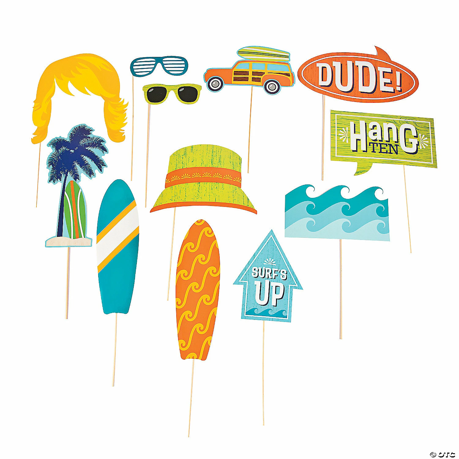 When life gives you waves, learn how to surf them! The perfect addition to your luau- or Hawaiian-themed party supplies, these Surf’s Up Photo Stick Props are sure to bring your party photo booth to life! Hand them out to guests as party favors and start snapping some photos! Paper. 5 1/2″ – 12″ x 2 1/4″ – 12″ props on 12 1/2″ wooden sticks. © OTC