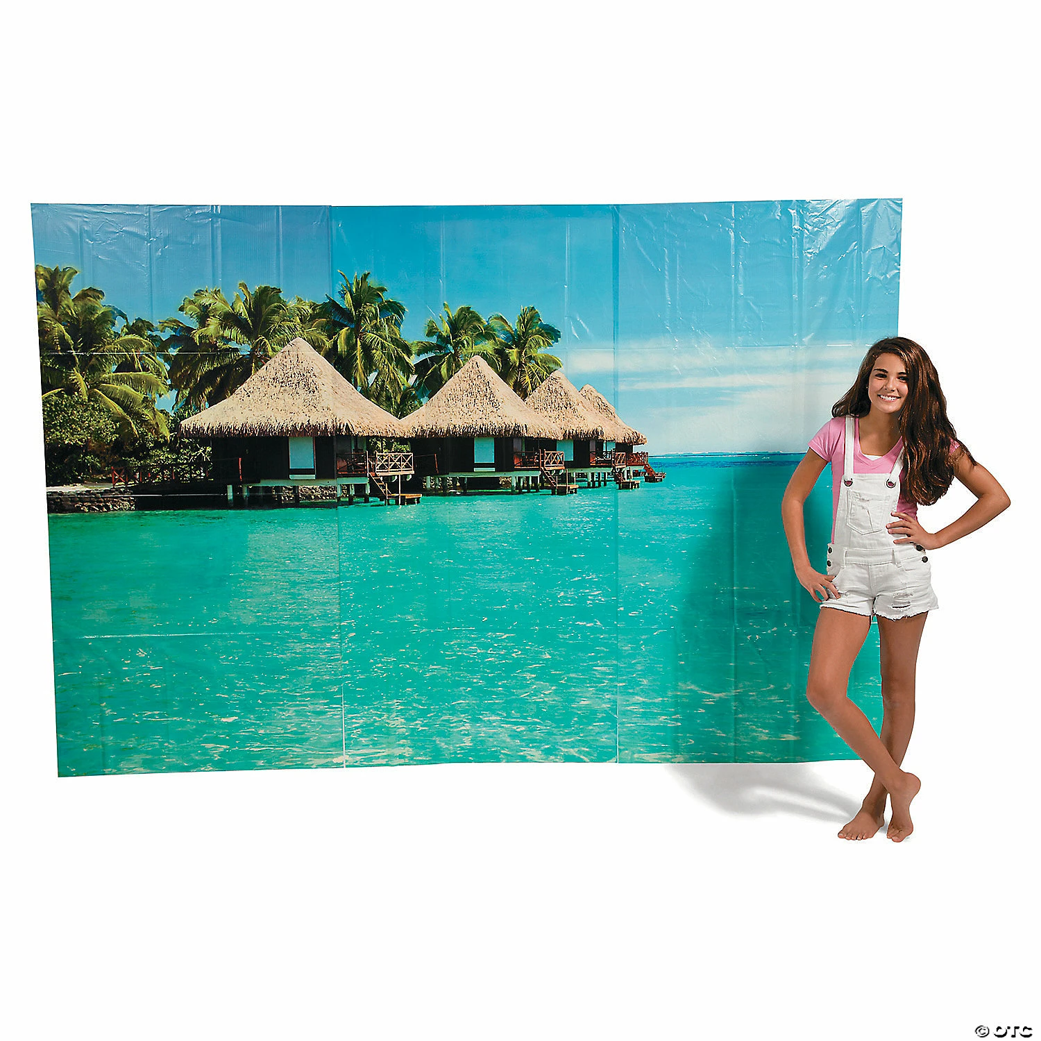Create your own oasis in an instant with this Tropical Cabana Backdrop Banner! Adhere to a wall to set a truly tropical serene scene for your luau or beach party bash. A must-have photo backdrop for your party, this plastic backdrop banner will make you feel like you’ve been transported to a lovely land far, far away. One gaze at this banner and you just might think you’re on a permanent vacation! (3 pcs. per set) Assembled, 108″ x 72″ © OTC