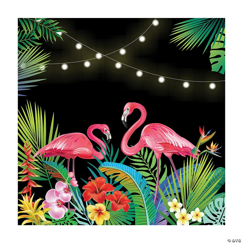 Featuring two flamingos amidst tropical plants and string lights, this plastic backdrop banner makes an excellent addition to event or party decorations. Great for a Tropical Nights themed prom or homecoming, it can also work as a decoration at any luau-themed party at your home! Plastic. 6 ft. x 6 ft. © OTC