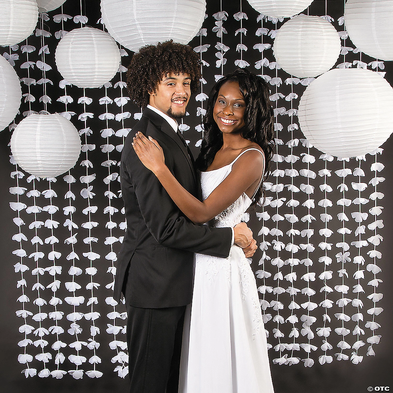 Adorn the background of your wedding with a white flower backdrop! Each flower is 4″. Polyester. 6 ft. x 6 ft. © OTC