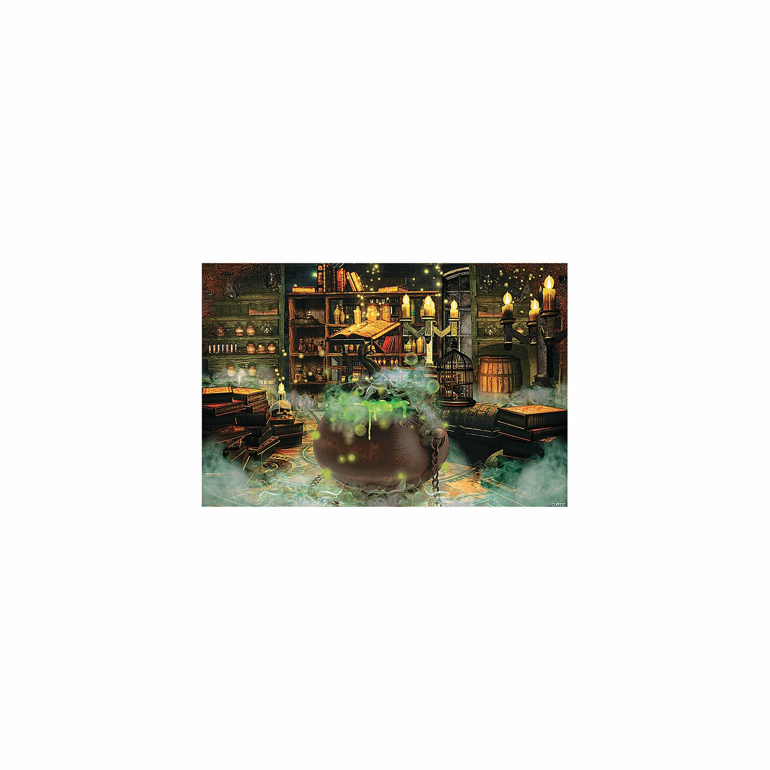 Conjure up a spooky atmosphere for fright night with this fun addition to your Halloween ideas. A must for your Halloween costume party, it’s complete with a bubbling cauldron, candles, mist and ancient-looking books. Guests love posing for pictures in a spellbinding witches’ kitchen! Plastic. (3 pcs. per set) Assembled, 9 ft. x 6 ft. Simple assembly required. © OTC